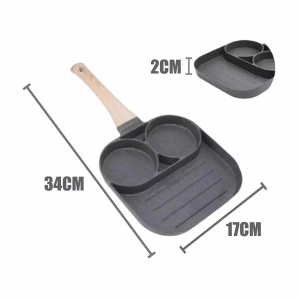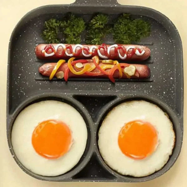 A Frigideira Antiaderente 3 em 1 é ideal para preparar uma variedade de pratos, desde ovos fritos e panquecas até carnes e legumes, tornando-se um utensílio essencial na sua cozinha.